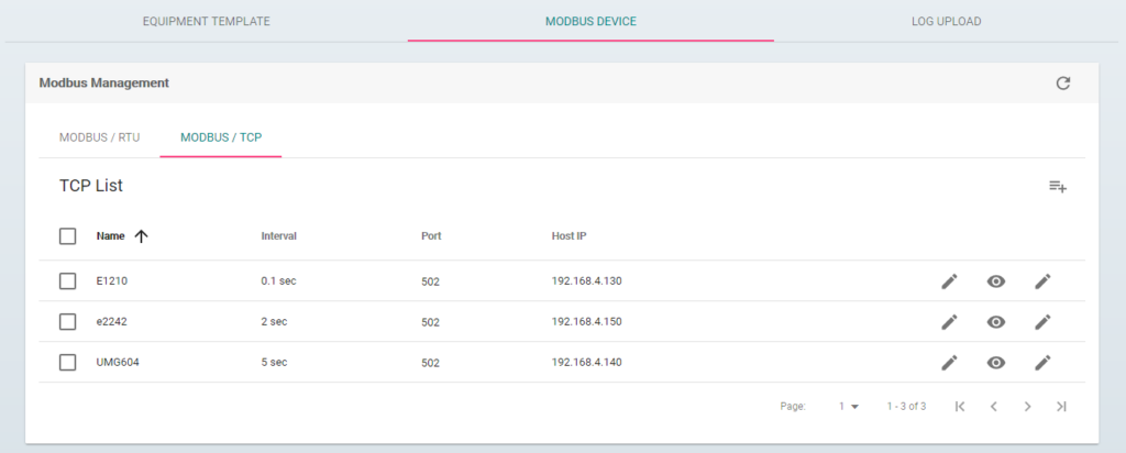 Następnie przechodzimy do „Modbus & Logging” aby skonfigurować profile odczytu danych protokołem Modbus i ustawić „kogo i jak” ma odpytywać ThingsPro.