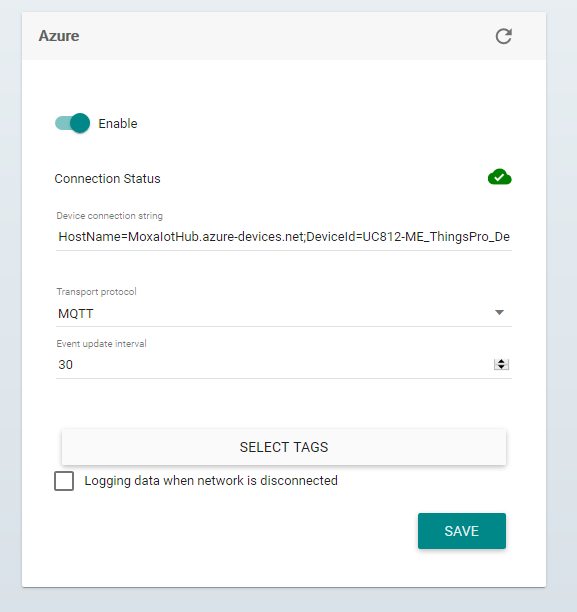 Na tym etapie mamy już wszystko, co potrzebne do nawiązania połączenia ThingsPro Gateway z chmurą Azure, przejdźmy więc do konfiguracji ThingsPro.