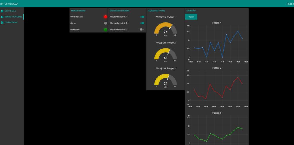 - Dashboard służący do monitorowania parametrów i sterowania sygnałami wyjściowymi podłączonymi do ioThinx 4510.