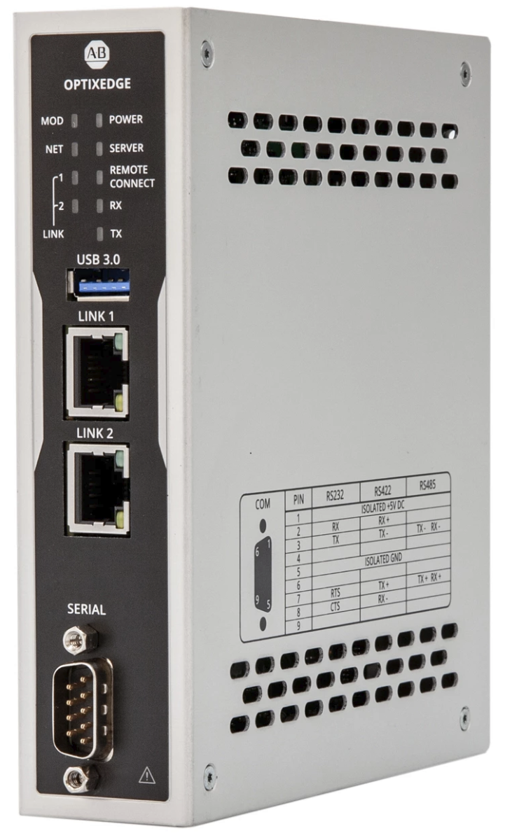 Moduły OptixEdge to urządzenia brzegowe przeznaczone do zbierania, przetwarzania i przesyłania danych z maszyn do aplikacji chmurowych oraz systemów nadrzędnych. Dzięki preinstalowanemu oprogramowaniu FactoryTalk Remote Access Hub i środowisku Edge Runtime umożliwiają realizację funkcji zdalnego monitorowania, integracji protokołów komunikacyjnych oraz bezpiecznego dostępu do infrastruktury OT.