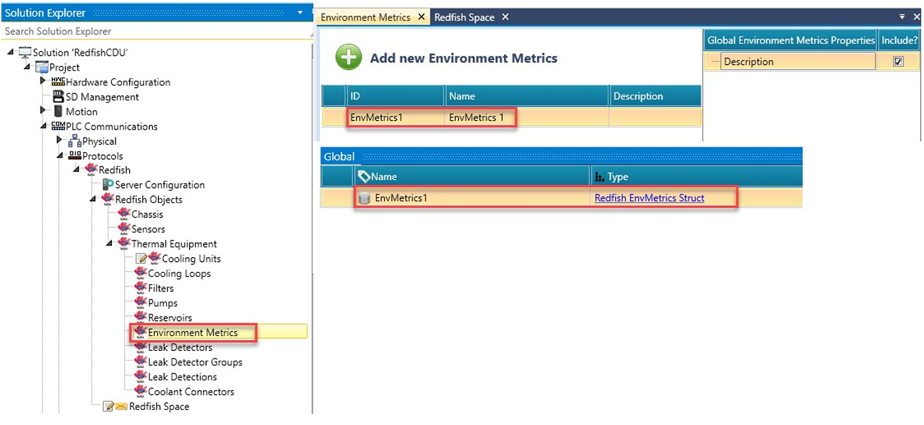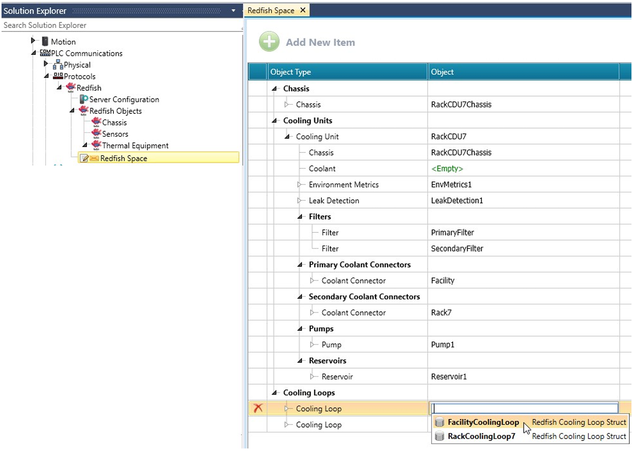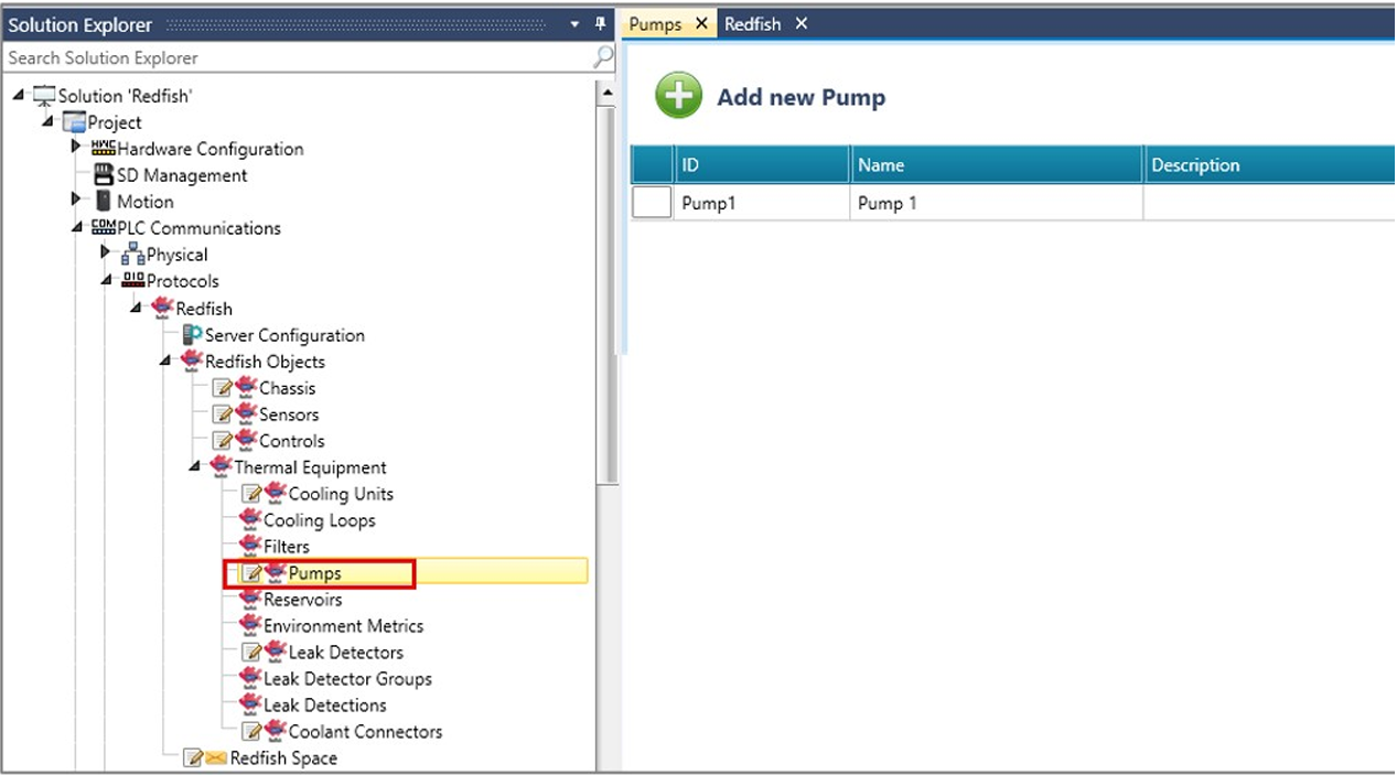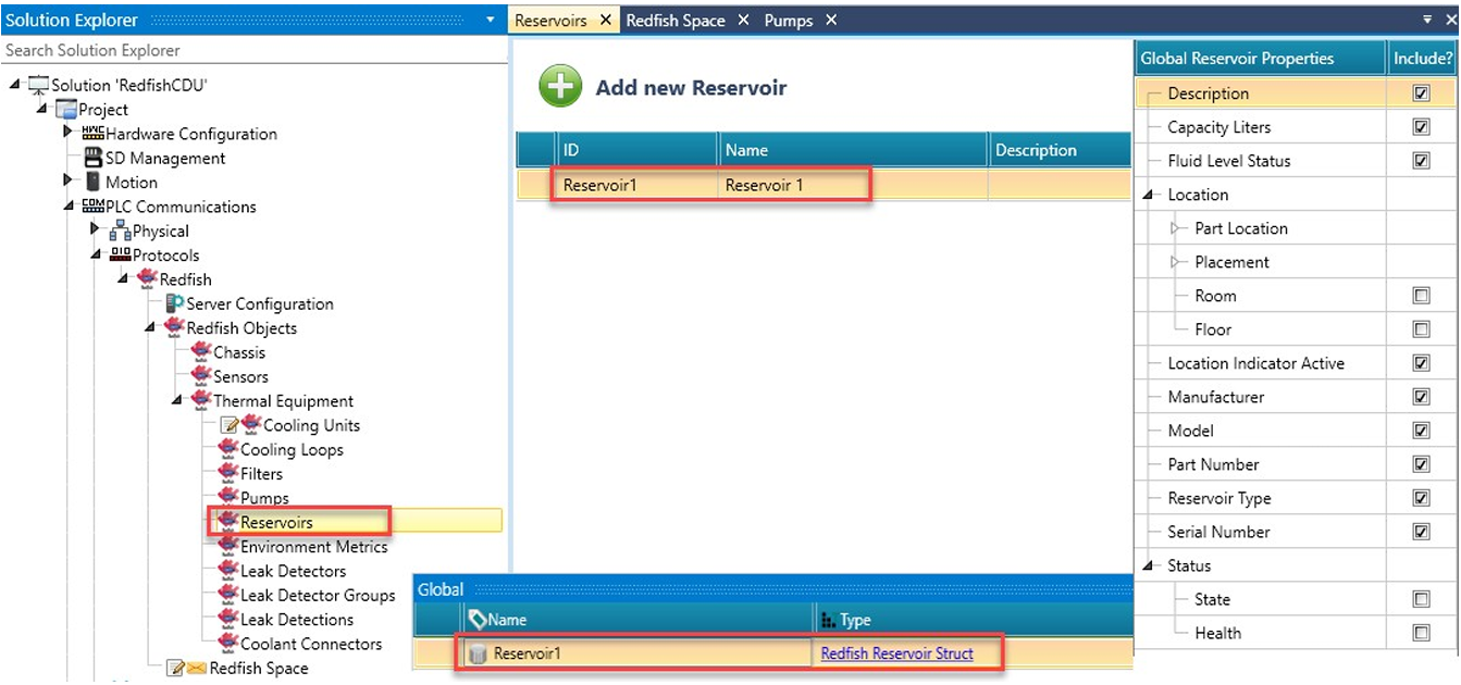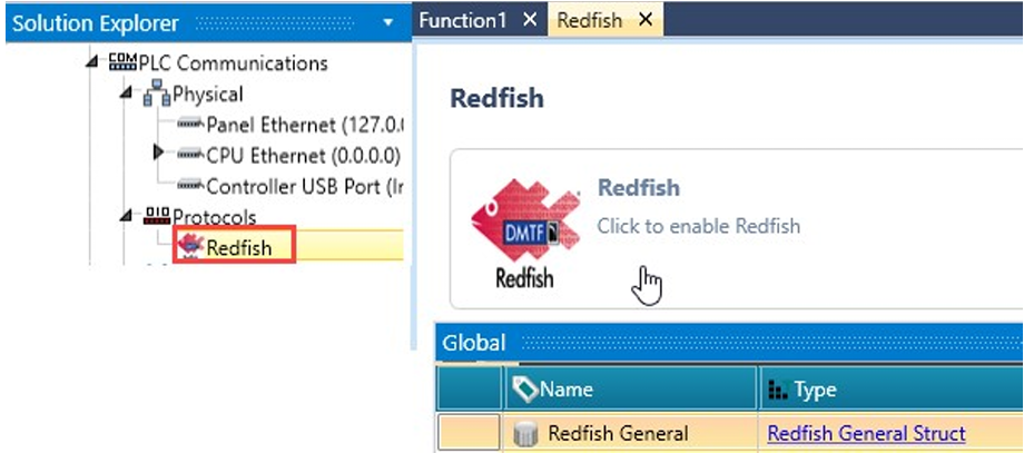 W Solution Explorer kliknij PLC Communications > Protocols > Redfish i kliknij, aby włączyć Redfish. UniLogic dodaje ogólną strukturę (Redfish General Struct).