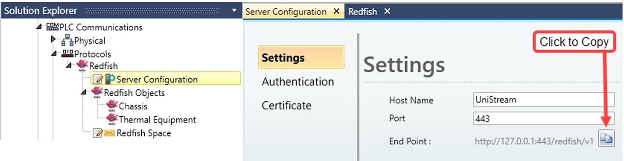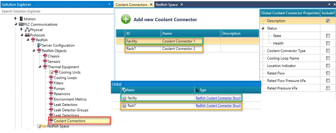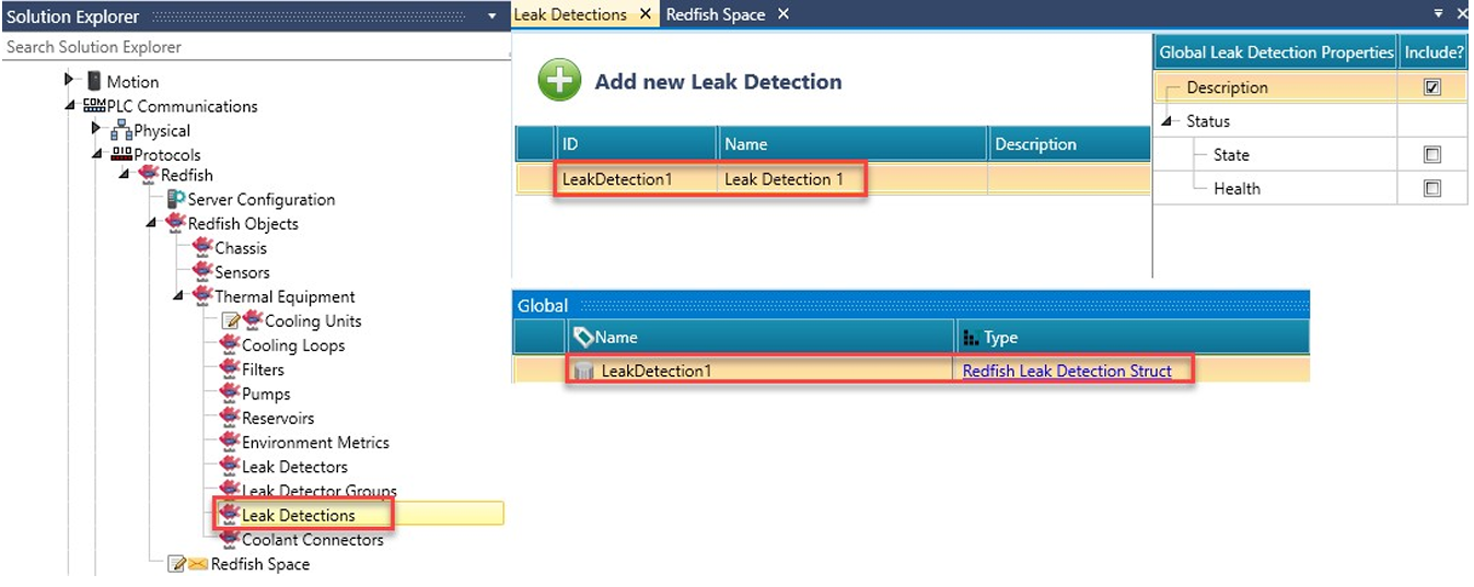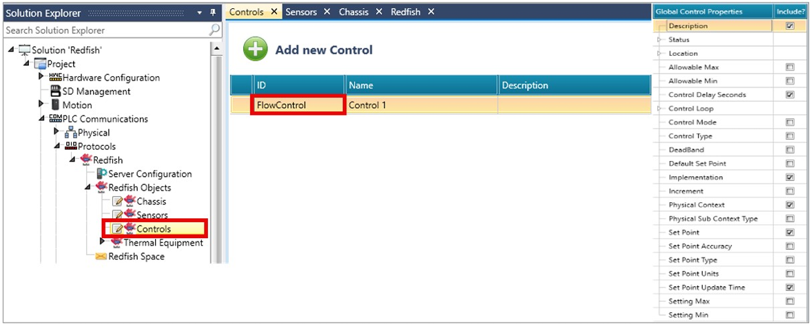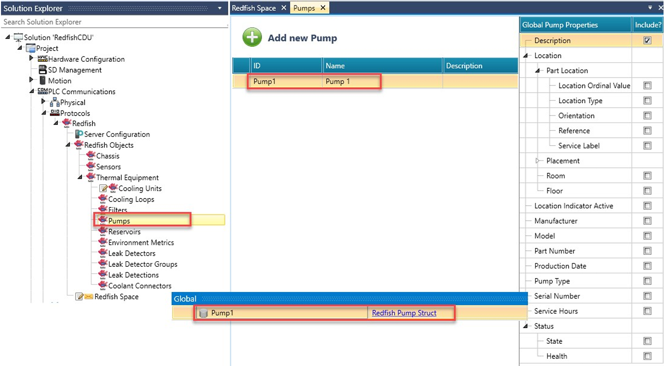 W Solution Explorer kliknij PLC Communications > Protocols > Redfish i kliknij, aby włączyć Redfish. UniLogic dodaje ogólną strukturę (Redfish General Struct).