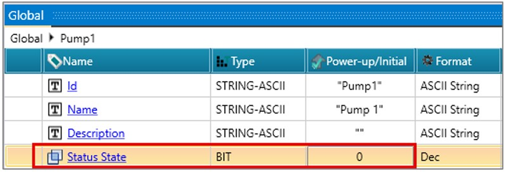 | Status State | BIT | Wskazuje obecny status lub stan obiektu |