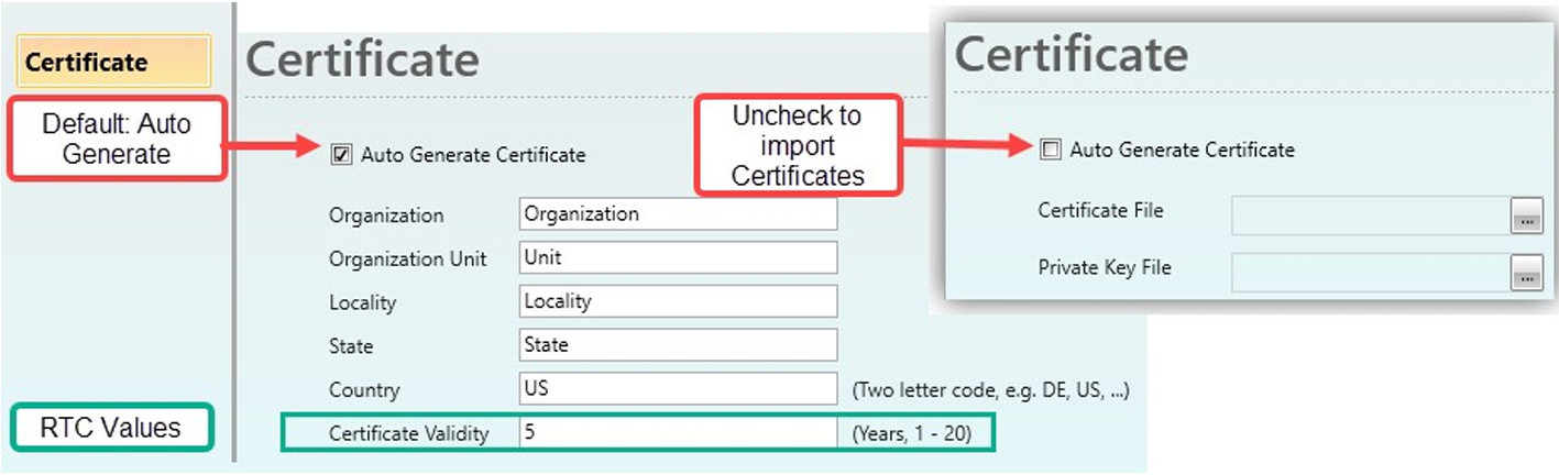 Należy pamiętać, że zegar RTC w sterowniku PLC musi być ustawiony poprawnie w celu właściwej implementacji ważności certyfikatu (Certificate Validity).