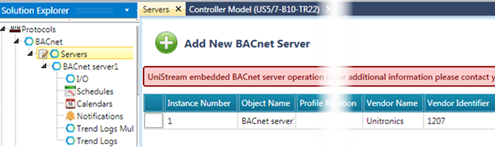 Sterowniki PLC+HMI z serii UniStream oraz wirtualne PLC posiadają funkcję pracy w sieci BACnet/IP jako Server. Innymi słowy, mogą udostępniać swoje dane do nadrzędnego systemu BACnet/IP. Dzięki takiemu rozwiązaniu można uzyskać automatyzację procesów zarządzaną przez protokół automatyki budynkowej.