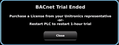 Każdy sterownik UniStream z wersją OS wyższą niż 1.28.58 posiada wbudowaną funkcjonalność pracy w sieci BACnet/IP jako Server przez okres 60 minut.