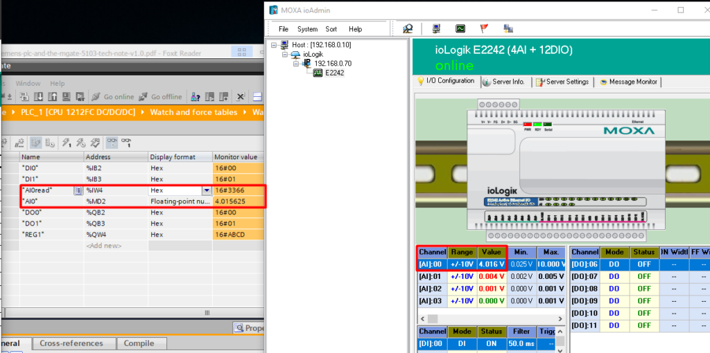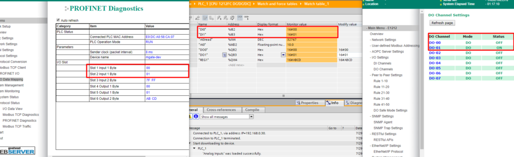 W naszym demo skonfigurowaliśmy trzy zmienne zgodnie z powyższymi instrukcjami. Następnie, po odłączeniu sterownika PLC, MGate wysłał do urządzeń Modbus komendy, zgodnie z naszymi zaleceniami.