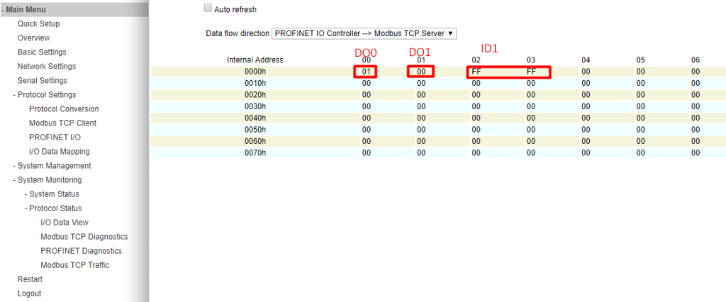Liczbę potrzebnych bajtów danych można sprawdzić w zakładce Protocol Settings -> I/O Data Mapping.