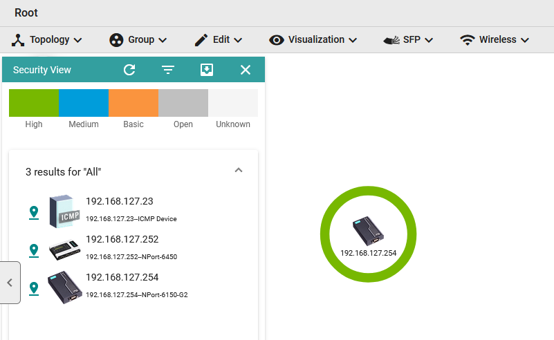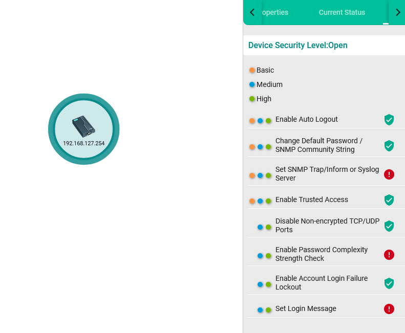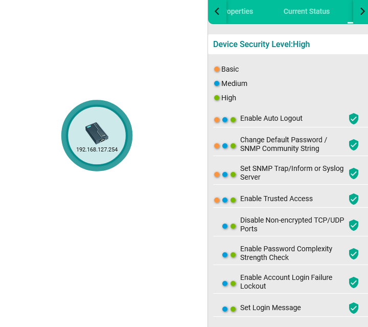 Security View – funkcjonalność pozwalająca na audyt cyberbezpieczństwa urządzeń pracujących w sieci. Dla każdego urządzenia możemy sprawdzić czy konfiguracja jest zgodna z IEC 62443-4-2. Dodatkowo otrzymujemy informację które wymagania normy są spełnione a które nie co znacząco ułatwia prawidłową konfigurację.