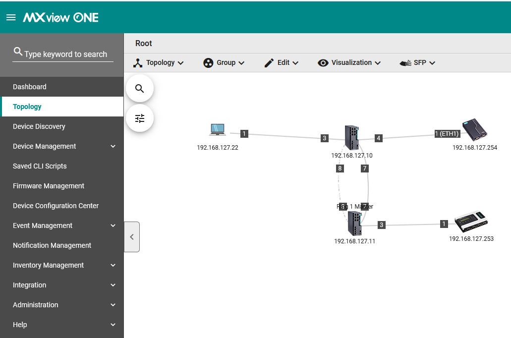 MXView One to oprogramowanie Moxa do zarządzania siecią przemysłową. Oprogramowanie oferuje szereg funkcjonalności, które znacząco ułatwiają codzienne utrzymanie sieci jak i diagnostykę w przypadku ewentualnych awarii. Oprogramowanie wykorzystuje do komunikacji protokół SNMP, współpracuje z urządzeniami Moxa jak i z urządzeniami innych producentów (potrzebny jest w takiej sytuacji plik MIB). Oprócz switchy Ethernet, oprogramowanie MxView One wspiera również inne urządzenia z interfejsem Ethernet, w tym serwery portów szeregowych.
