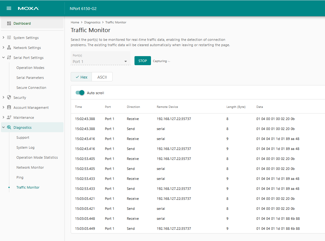 Urządzenia szeregowe w tradycyjnym środowisku są uważane za względnie bezpieczne, ponieważ ich komunikacja na magistrali szeregowej jest krótka i trudna do przechwycenia (często w chronionych środowiskach przemysłowych). Jednak użycie serwera urządzeń, takiego jak NPort, do przesłania danych do sieci Ethernet radykalnie zmienia sytuację, ponieważ sieć Ethernet jest znacznie bardziej narażona na zagrożenia cybernetyczne. Serwer NPort 6000-G2 umożliwia szyfrowanie komunikacji w sieci Ethernet.