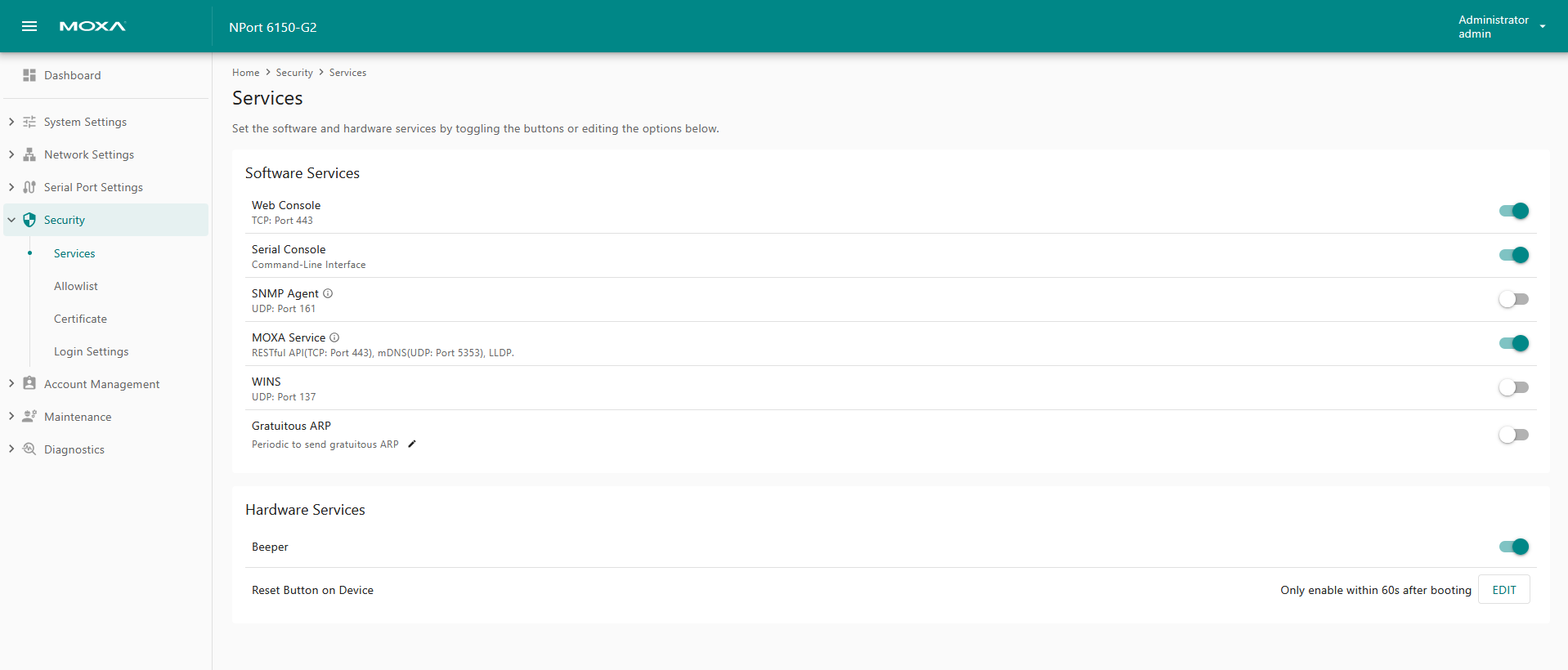 Kwestia cyberbezpieczeństwa w serii NPort 6000-G2 została potraktowana priorytetowo i była głównym powodem, dla którego powstała ta seria produktów. Zadbano o to, żeby serwery portów szeregowych były zabezpieczone przed atakami hakerskimi - postawiono na zgodność z normą IEC 62443-4-2 (certyfikat Q4 2025). W praktyce oznacza to, że urządzenie wyposażono w szereg funkcjonalności (wymienione poniżej), które, co warto podkreślić, po odpowiednim skonfigurowaniu, zapewniają ochronę przed celowymi atakami.