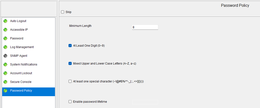 • Wzmocnione wymagania dotyczące minimalnej złożoności hasła