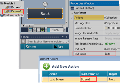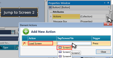 - Kliknij pole Tag/Screen/File, aby wyświetlić listę dostępnych ekranów, a następnie wybierz Screen2.