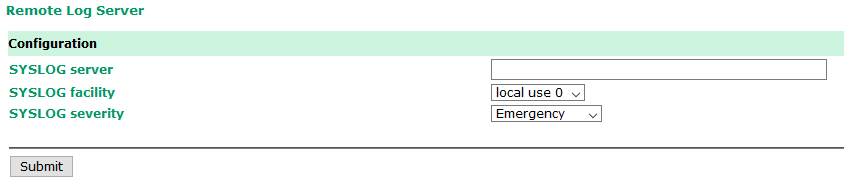 Ustawienia serwera Syslog: Log, Monitoring and Warning -> Remote Log Server