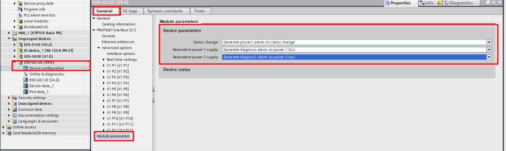 - W zakładce Catalog rozwinąć opcję Module. Dostępne są w niej Device data oraz Port data.