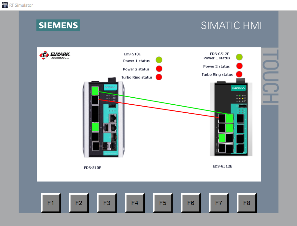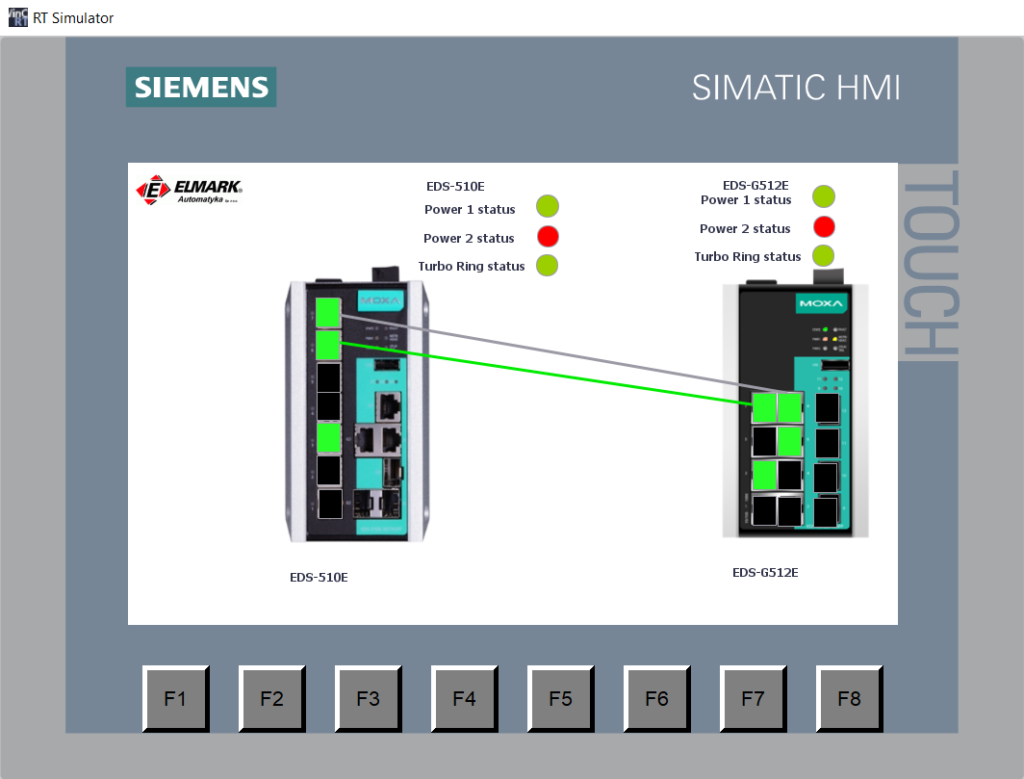 Parametry wymieniane cyklicznie mogą być wykorzystywane również do wizualizacji w systemach SCADA lub panelach HMI. Do tego celu została utworzona prosta wizualizacja statusu Turbo Ringu.