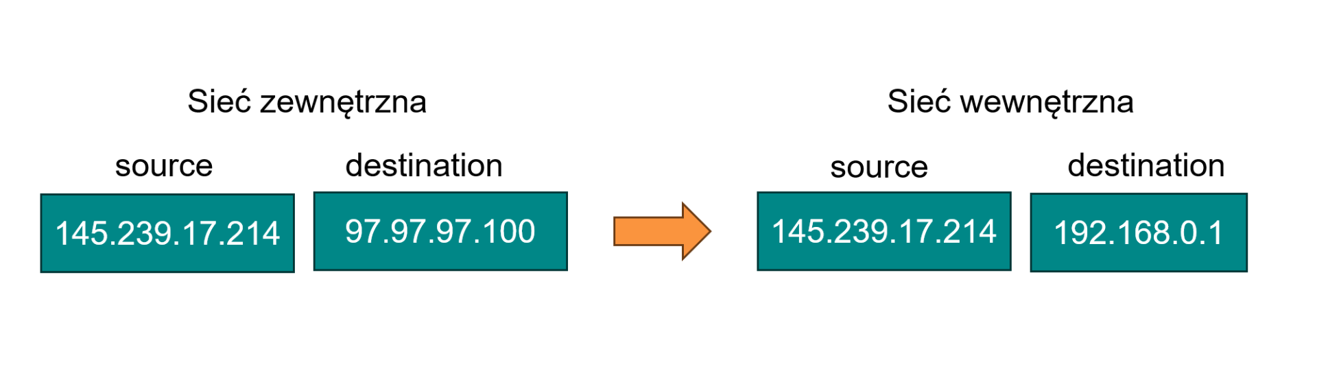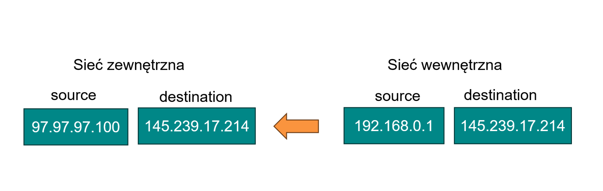 NAT (Network Address Translation) to mechanizm sieciowy służący do zmiany adresów IP i numerów portów. Dzięki temu urządzenia z prywatnym adresem mogą się komunikować z urządzeniami spoza sieci prywatnej. W praktyce NAT występuje w dwóch podstawowych wariantach, zależnie od tego, który adres w pakiecie jest modyfikowany: