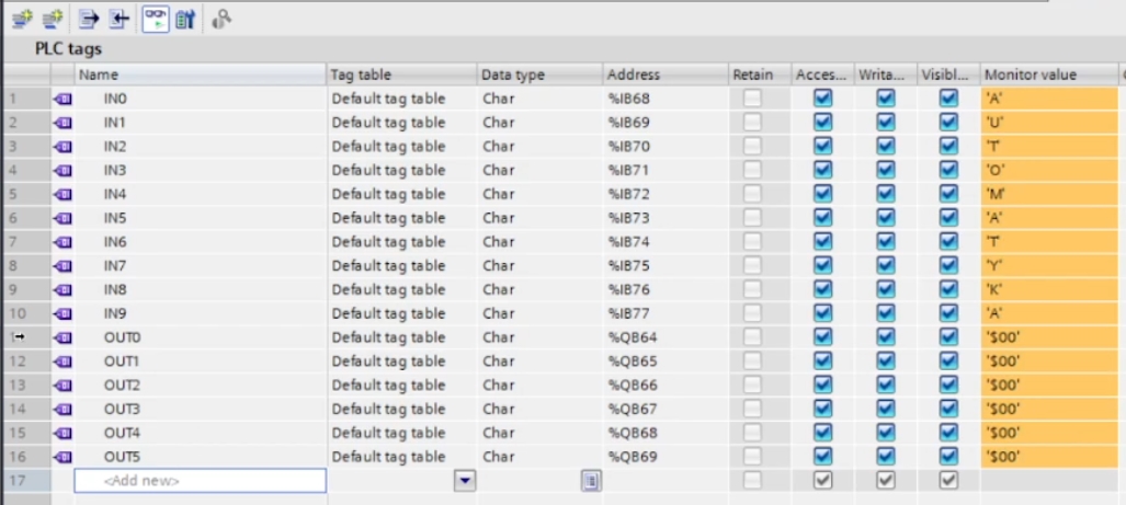 W celu wysłania danych w drugą stronę wystarczy wpisać je w odpowiednie komórki w sterowniku PLC firmy Siemens: