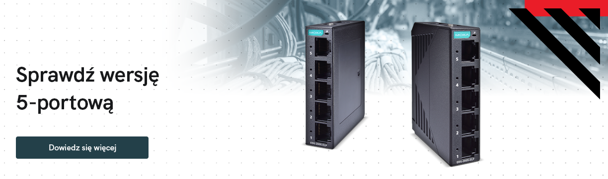 Przemysłowy przełącznik Ethernet EDS-2008-ELP to następca popularnego modelu EDS-208. Urządzenia tej serii posiadają 8 miedzianych portów 10 / 100M, które idealnie nadają się do zastosowań wymagających najprostszych połączeń Ethernet w instalacjach przemysłowych o niewielkim narażeniu na uszkodzenie. EDS-2008-ELP umożliwia włączanie obsługi kolejkowania ruchu (QoS) oraz ochronę przed burzą broadcastową (BSP) za pomocą przełączników DIP na obudowie. EDS-2008-ELP jest również zgodny z PROFINET Conformance Class A (CC-A), co czyni te przełączniki odpowiednimi do pracy w sieciach PROFINET.