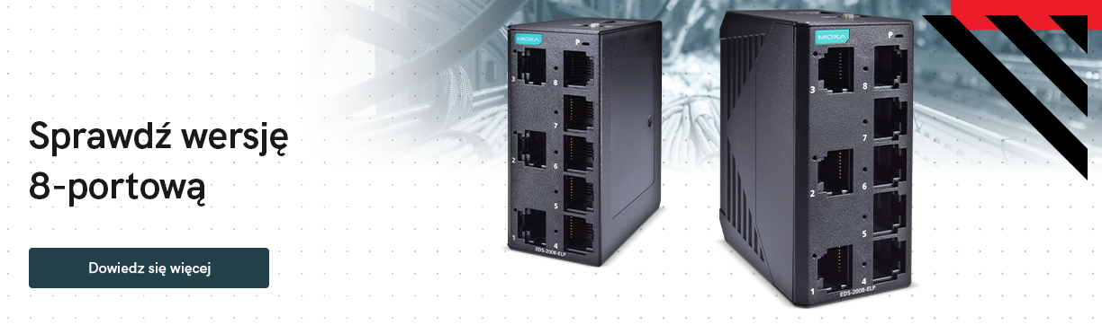 Przemysłowy przełącznik Ethernet EDS-2005-ELP to następca popularnego modelu EDS-205. Urządzenia tej serii posiadają 5 miedzianych portów 10 / 100M, które idealnie nadają się do zastosowań wymagających najprostszych połączeń Ethernet w instalacjach przemysłowych o niewielkim narażeniu na uszkodzenie. EDS-2005-ELP umożliwia włączanie obsługi kolejkowania ruchu (QoS) oraz ochronę przed burzą broadcastową (BSP) za pomocą przełączników DIP na obudowie. EDS-2005-ELP jest również zgodny z PROFINET Conformance Class A (CC-A), co czyni te przełączniki odpowiednimi do pracy w sieciach PROFINET.