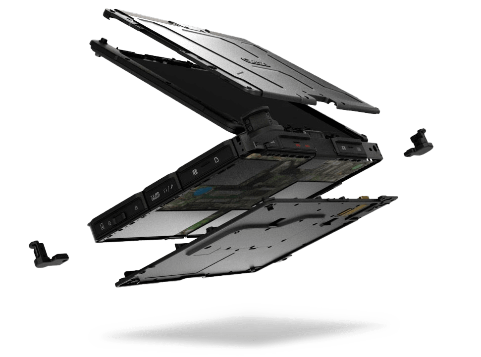 Wzmocniony laptop V110 został skonstruowany z najwyższej jakości materiałów, aby zapewnić mu odpowiednią trwałość. Stop magnezu, niezwykle mocny metal konstrukcyjny, który jest również jednym z najlżejszych na świecie, jest używany do precyzyjnego odlewania głównej konstrukcji obudowy V110. Ponadto zastosowano gumowany polimer absorpcyjny w głównych punktach styku i ulepszony twardy polimer w miejscach mniej narażonych na uderzenia. Niezależne testy i certyfikacja zgodnie ze standardami MIL-STD-810H, IP65 i MIL-STD461G potwierdzają jakość produktu.