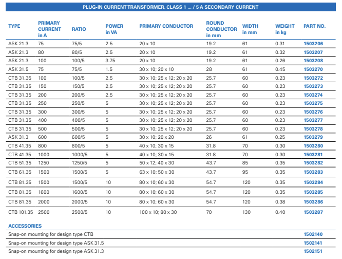Przekładnik prądowy PLUG-IN klasa 1 .../5 A