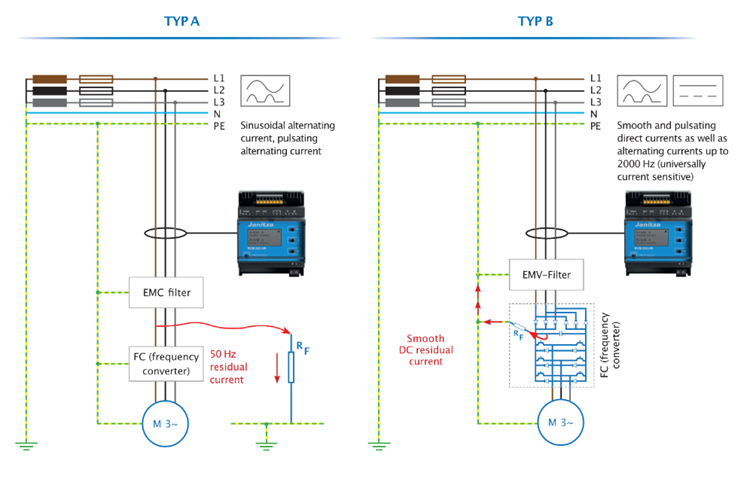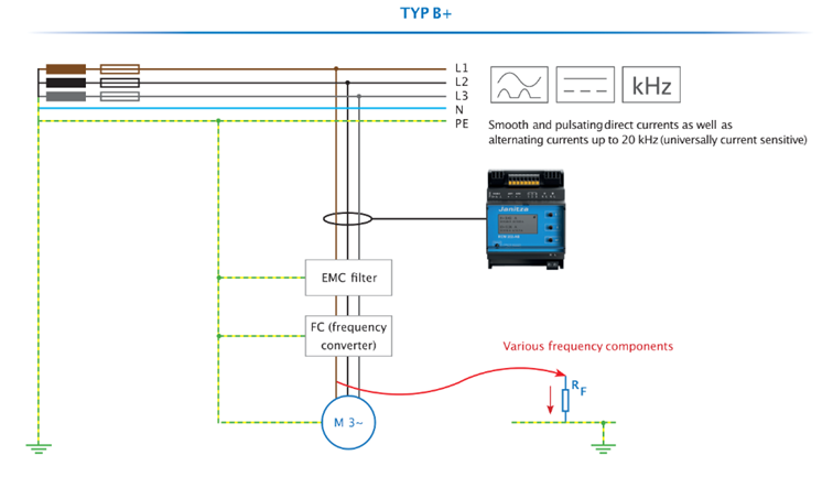 - Wykrywanie, ocena i monitorowanie prądów różnicowych typu A, B i B+