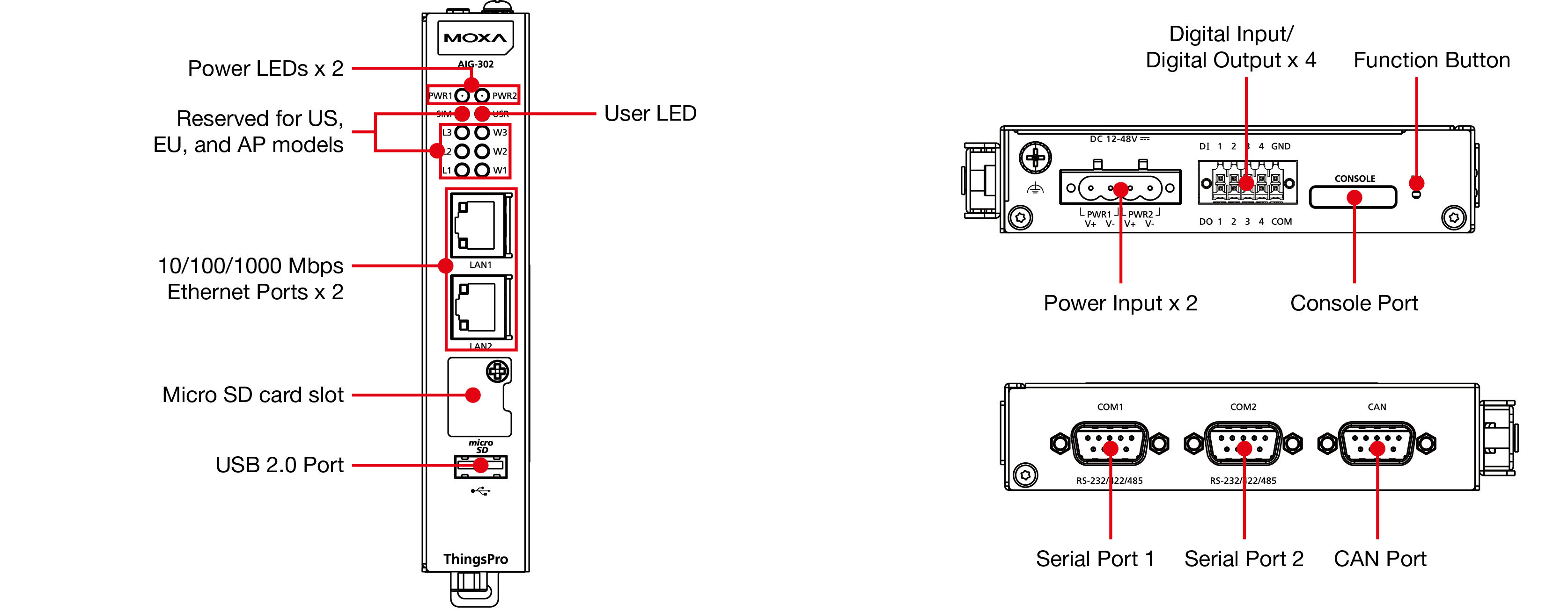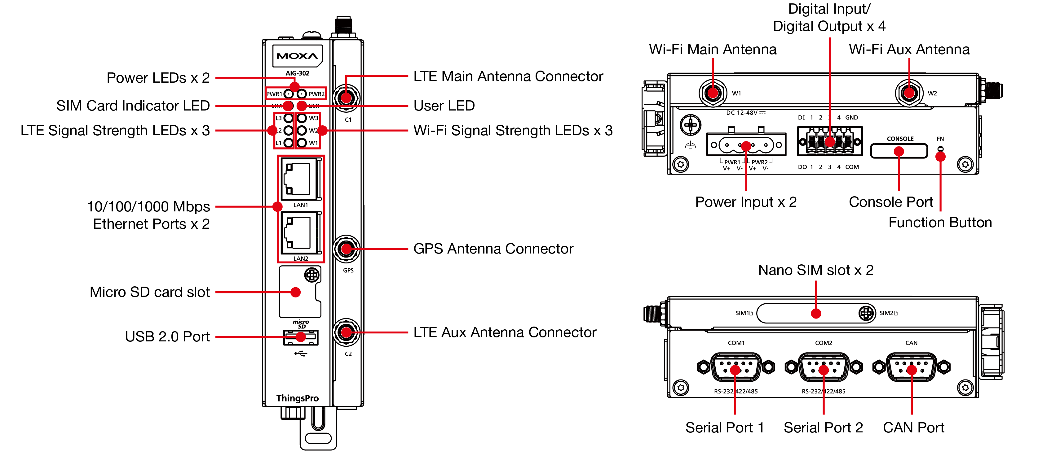 | Złącze anteny komórkowej | SMA x 2 (z wyłączeniem AIG-302-T-AZU-LX) |