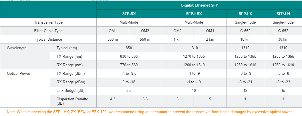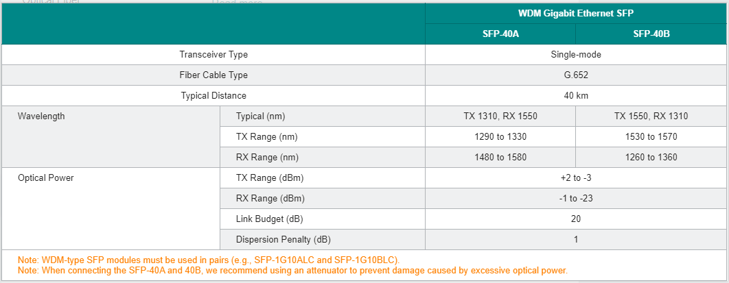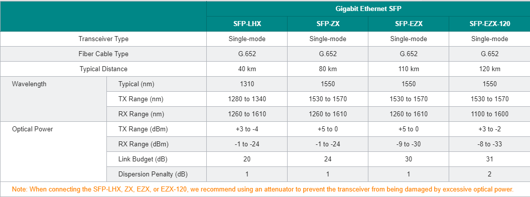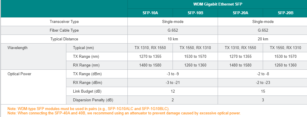 | Connectors | Duplex LC Connector or Simplex LC Connector (WDM-type only) * WDM-type SFP modules must be used in pairs (e.g., SFP-1GXXALC and SFP-1GXXBLC) |
