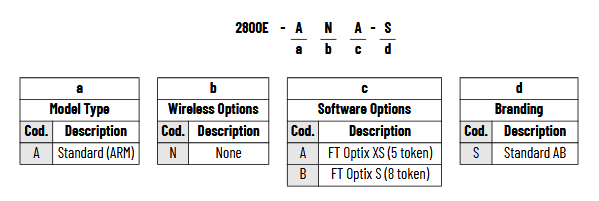 Aby poprawnie zidentyfikować wersję modułu OptixEdge, skorzystaj z poniższego schematu oznaczeń.