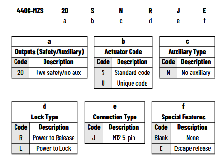Aby zidentyfikować model blokady bezpieczeństwa, użyj następującego schematu: