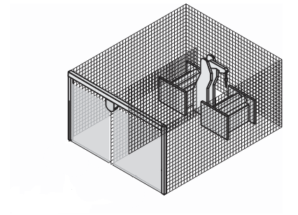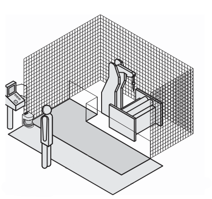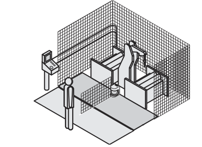 Skaner SafeZone w orientacji pionowej może służyć do ochrony dostępu. Rozwiązanie stosowane, gdy wejście do strefy maszyny jest ograniczone fizycznie. Skaner wykrywa wejście osoby do strefy.