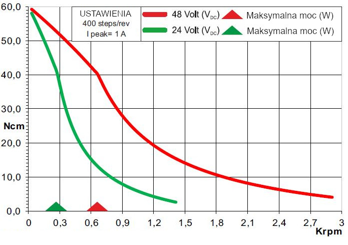 Zestaw krokowy z sterowaniem impulsowym, zasilanie 48VDC, 1A o momencie 80 Ncm.