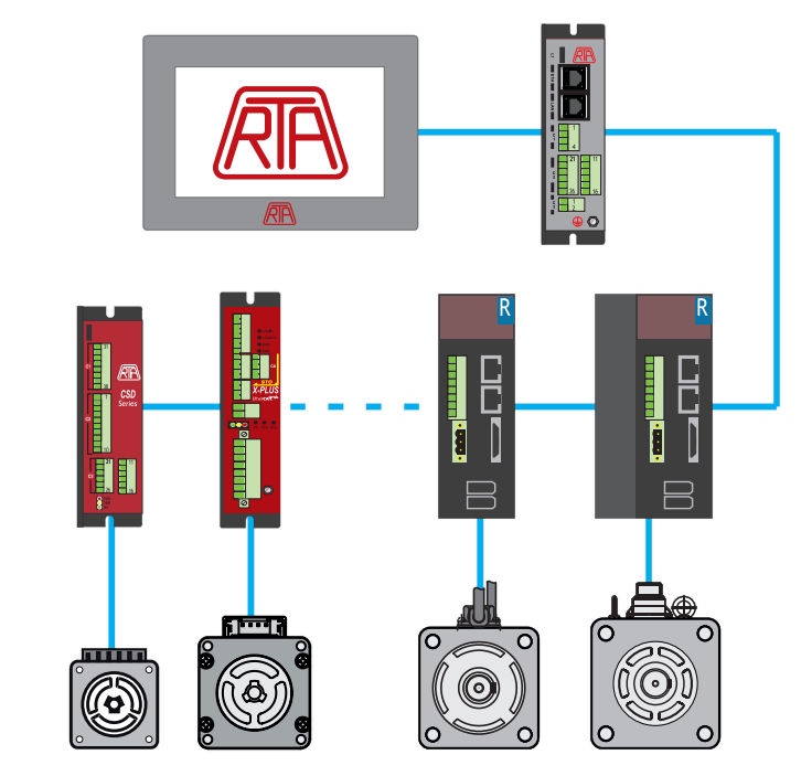 - Pełna kompatybilność z sterownikami krokowymi RTA